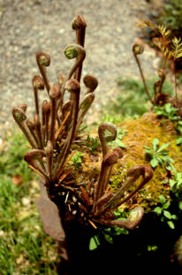 朝 わずかに新芽の気配を知らせたヤシャゼンマイ 夕方には
