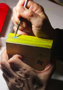 食卓から近い所に植えた ツバキの古木は 蕾の先をわずかに開いて