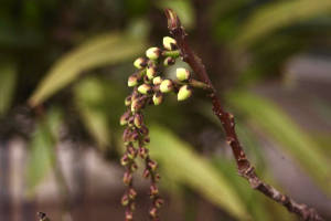 それから数年後 棚下のシダのあいだから 小さなピンクの花が