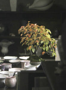 仕上げたものは 主に ギャラリーの小さなテーブルや木のイスにかけて