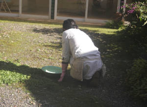 重ねた布を ひたすら波縫いしていく。とても単純な作業。