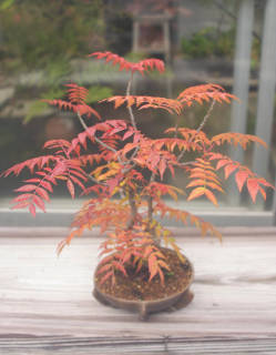 雨にぬれて 小さなカイの木の紅葉が いっそう艶やかにみえる。