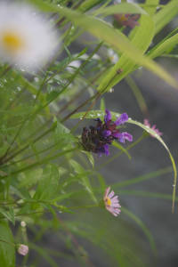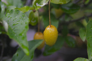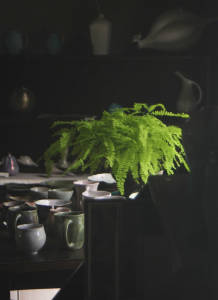 うす暗い通路の先から流れる ぼんやりした外光の下でみるコアジサイ。