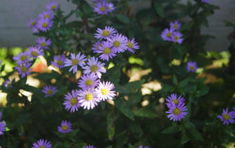 他の野紺菊より 大幅に遅れて咲き出した野紺菊のうす紫が デッキの