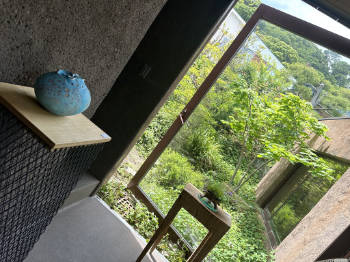 庭前方の西洋カシワが 大きな葉をはためかせて 風を包むように