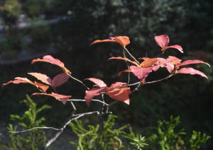 木立の落葉がすすみ 草々の末枯れから 赤や山吹色が くっきり映る。