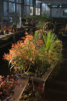 温室では 雪柳の紅葉が 落ちそうで落ちない時間がしばらく続いた。